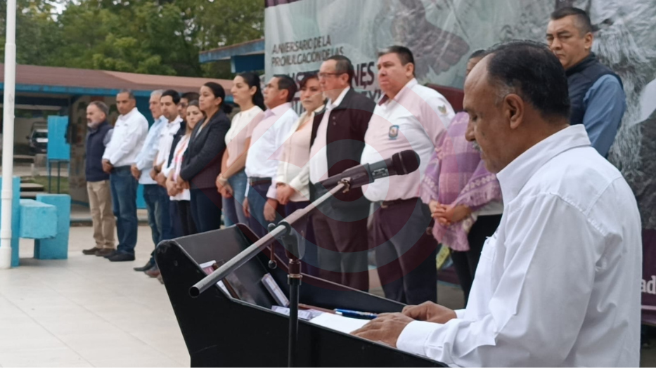 La reseña histórica de la conmemoración de un aniversario más de la promulgación de las Constituciones de 1857 y 1917, estuvo a cargo del jefe del Departamento de Educación Municipal, Leoncio Villegas Lara.