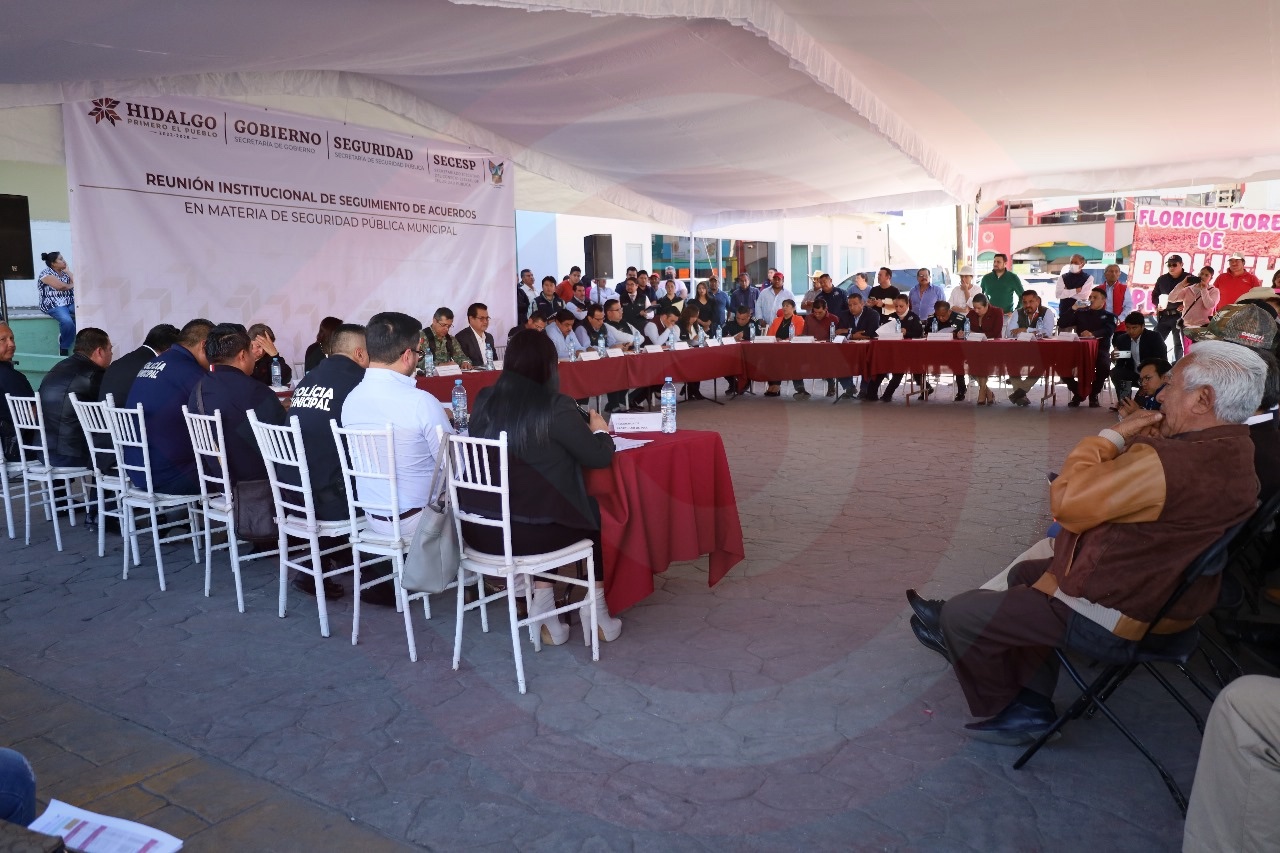 Tlaxcoapan, Hgo.- El municipio de Tlaxcoapan fue sede de la primera reunión de evaluación a cielo abierto del desempeño y administración de corporaciones policiales municipales en su segunda etapa.