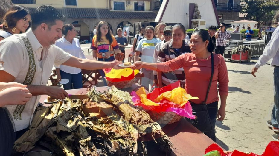 Correspondió al mandatario municipal partir el singular tamal y repartir porciones a los asistentes en general, quien estuvo acompañado de las soberanas María Fernanda Cortés Flores, “Embajadora Turística Municipal”; Rosario Cervantes “Reina Solidaridad” y Yudit Téllez, “Mexicana Universal Huejutla de Reyes”, las tres con funciones del 2023 – 2024.