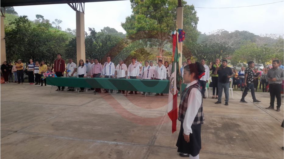 Las actividades, como es propio en todo acto cívico, iniciaron con el protocolo consistente en honores al Lábaro Patrio, portado por estudiantes del plantel educativo anfitrión y posterior entonación del Himno Nacional en lenguas náhuatl y castellana, por los alumnos asistentes en pleno bajo la dirección del profesor José Ponciano González Arenas.