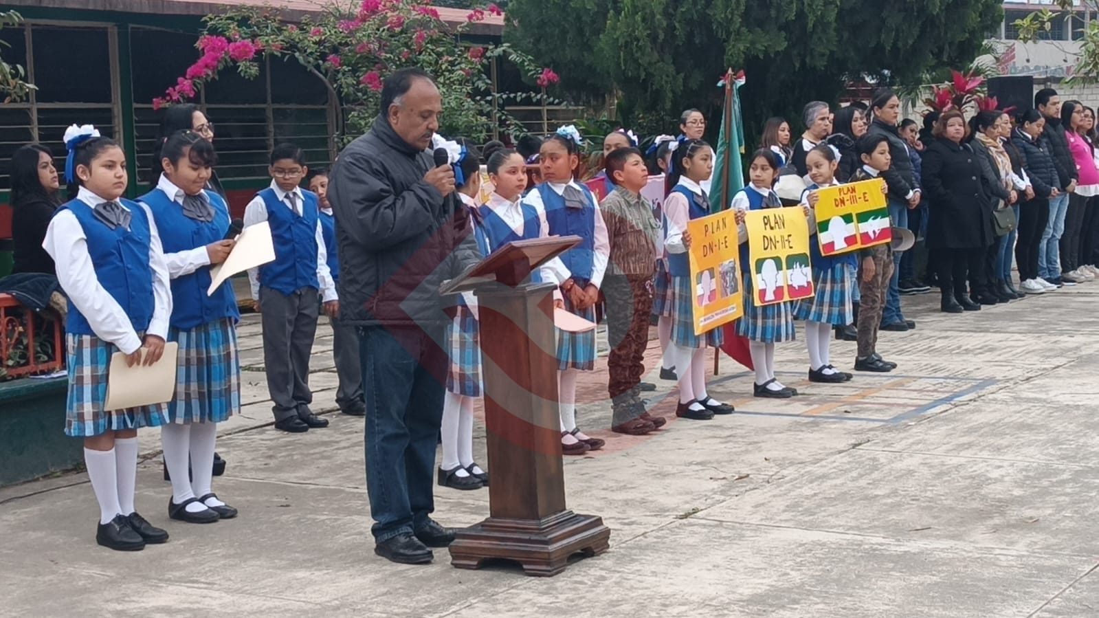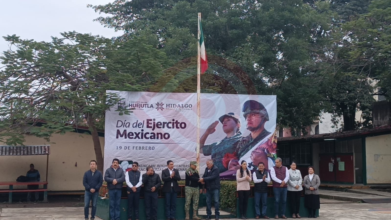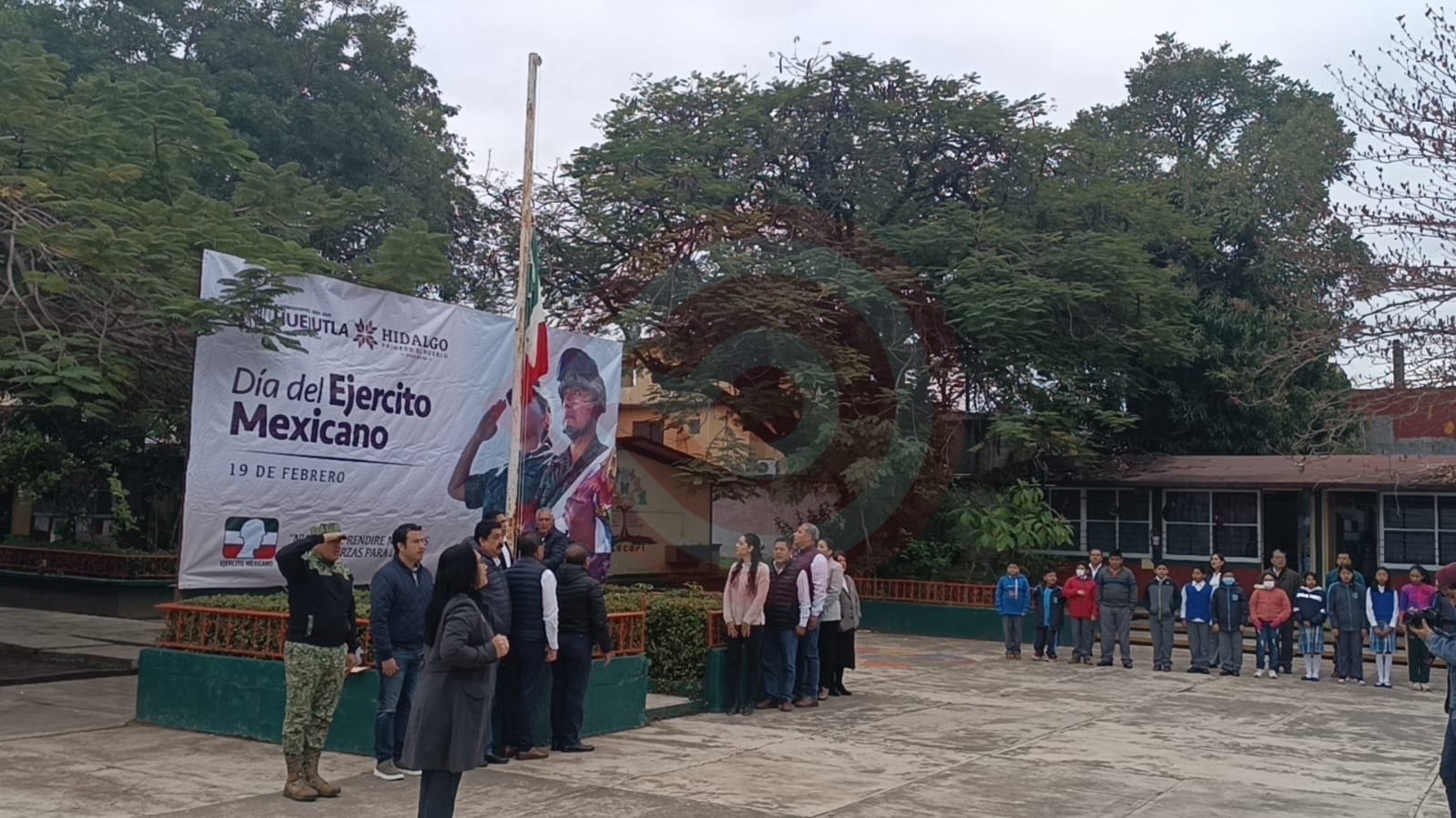 Huejutla, Hgo.- Alumnos, maestros, autoridades municipales y educativas participaron en el evento cívico de izamiento de bandera a toda asta, con motivo del Día del Ejército Mexicano, evento realizado la mañana de este lunes 19 de febrero en el patio cívico de la Escuela Primaria “Lázaro Cárdenas del Río” en esta ciudad de Huejutla de Reyes.