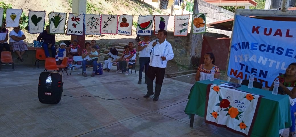 Huejutla, Hgo.- Autoridades educativas participaron en la Escuela Prescolar Indígena de la comunidad de Axcaco en la conmemoración del Día Internacional de la Lengua Materna.