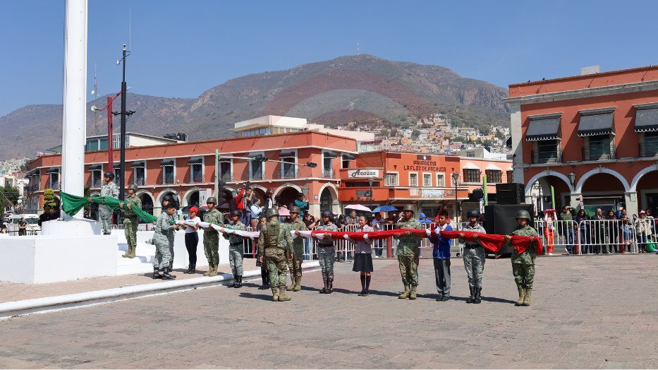 El acto cívico fue encabezado por el secretario de gobierno, Guillermo Olivares, en representación del gobernador Julio Menchaca Salazar. La encargada de la Secretaría de Bienestar e Inclusión Social, Neyda Naranjo Baltazar, brindó el mensaje institucional, en el que destacó la importancia de respetar y enaltecer a nuestro lábaro patrio, ya que es la representación del amor que tenemos por nuestra nación.