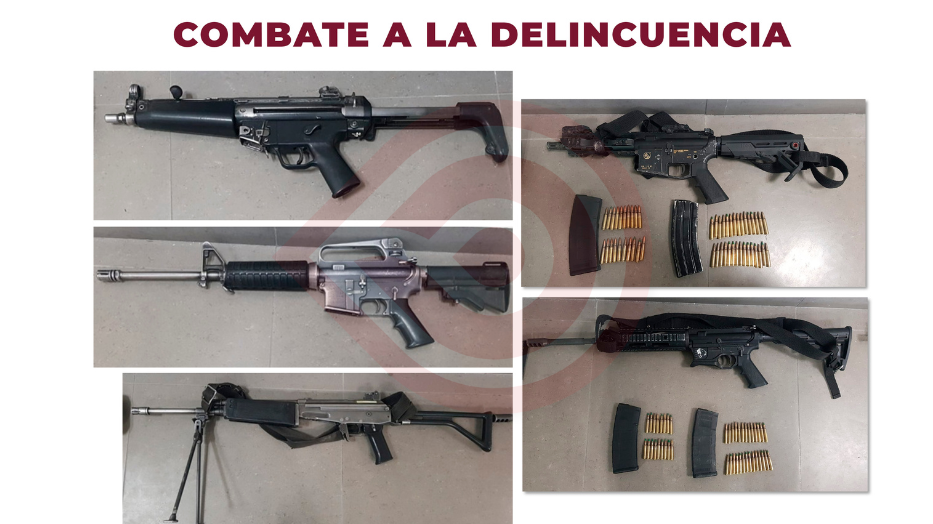 Dichas personas viajaban a bordo de una camioneta Chevrolet Blazer, color blanco, sin placas de circulación, y tenían en su poder cinco armas de fuego largas, de las cuales tres fueron robadas durante la agresión a los policías municipales. Además, se les decomisaron 93 cartuchos útiles, diversas dosis de hierba seca con características propias de la marihuana y de droga sintética.