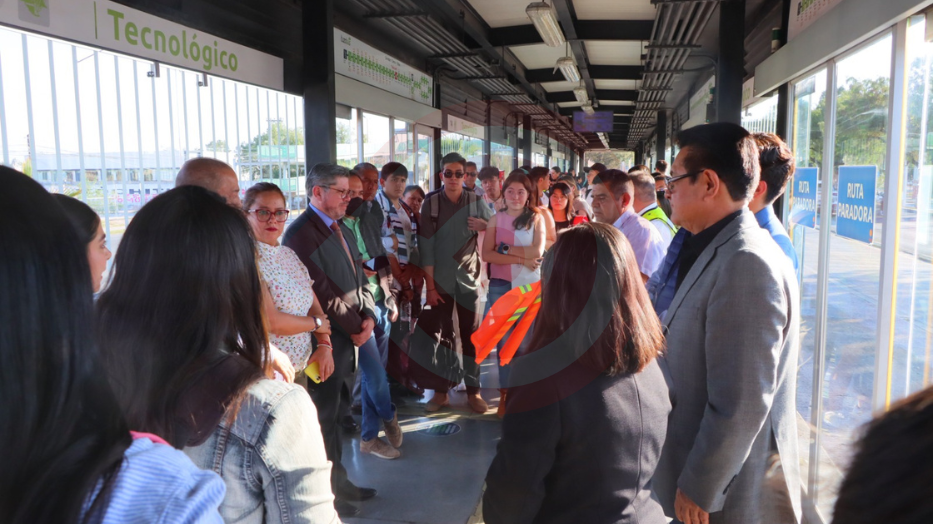 Pachuca de Soto, Hgo.- La titular de la Secretaría de Movilidad y Transporte (Semot), Lyzbeth Robles Gutiérrez, y el secretario de Gobierno de Hidalgo (Segobh), Guillermo Olivares Reyna, se reunieron con alumnas y alumnos del Instituto Tecnológico de Pachuca (ITP) en la estación número 14 del Sistema Tuzobús denominada “Tecnológico”, con la finalidad de dar a conocer un cambio en el itinerario del servicio troncal Exprés T-01.