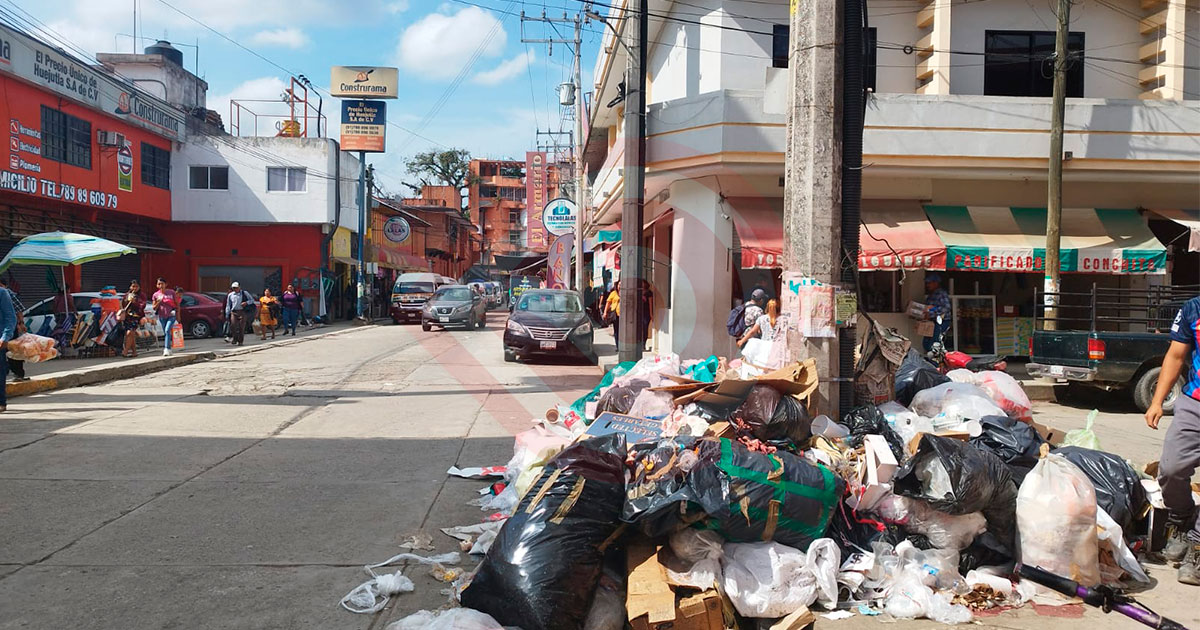 Hacemos un recorrido en el centro de la ciudad, observa frente a la tienda comercial AKA el gran bulto de basura, el desorden de los comerciantes ambulantes, el transporte colectivo y rural y nos dice sobre el arroyo de excremento que pasa por la ciudad.