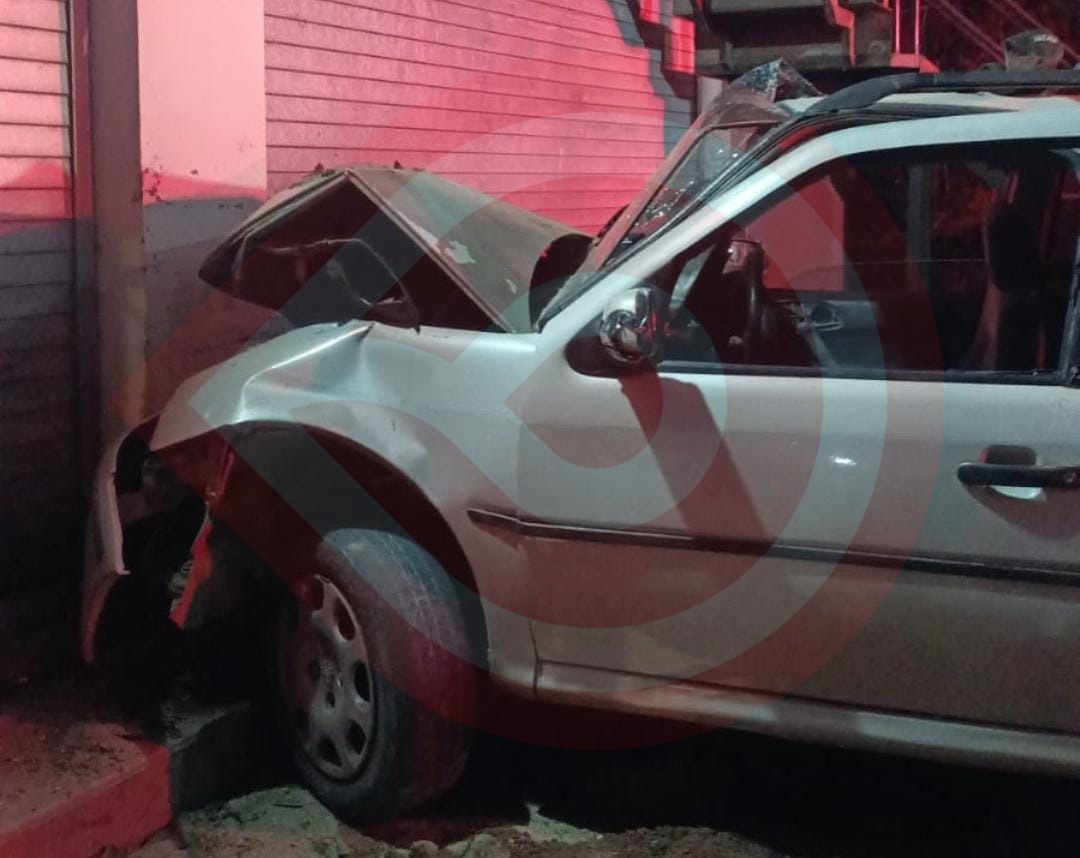 Huejutla, Hgo.- Automovilista que probablemente manejaba a exceso de velocidad, terminó estampado contra un local comercial en la calle Jaime Nunó de la colonia Capitán Antonio Reyes de esta ciudad.
