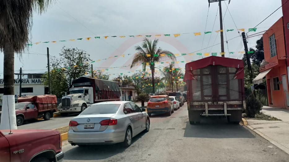 Ante la cantidad de asistentes, en el bulevar central se generó embotellamiento vial, obligando a los transportistas, dejar a los pasajeros a unos cuantos metros de la carretera federal Tamazunchale-Álamo.