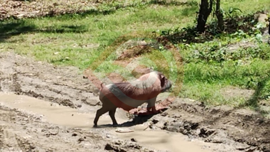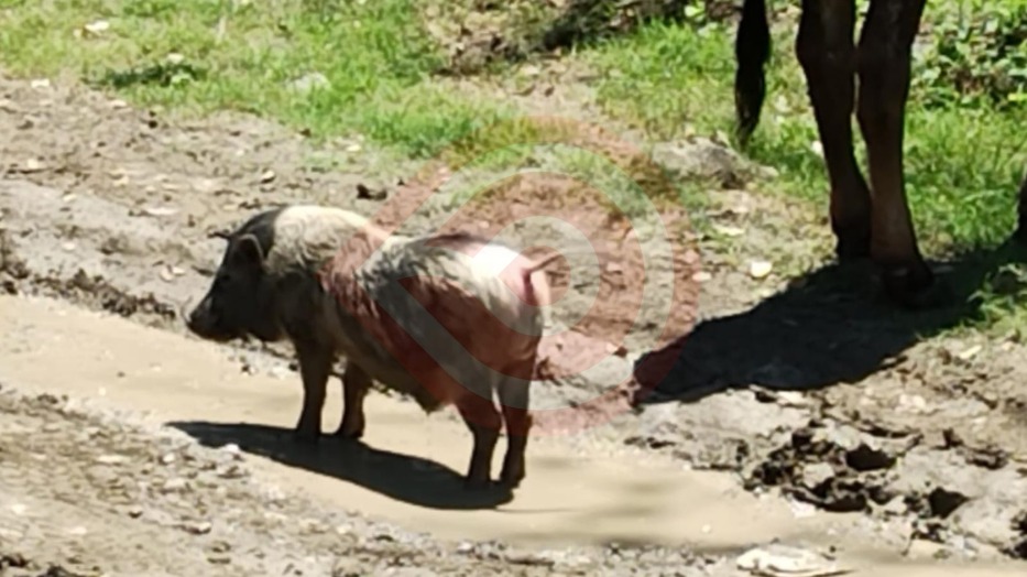 El animal deambulaba junto con tres vacas; el jabalí, de edad joven, al parecer está domesticado, ya que no huyó al notar la presencia de personas que caminaban en este sector poblacional.