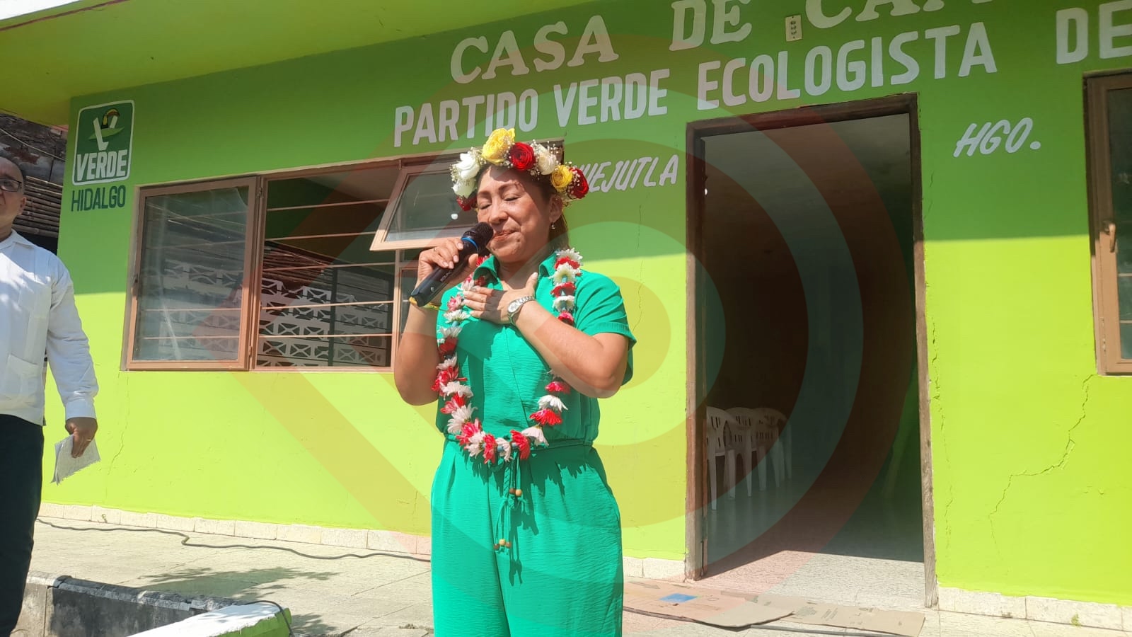 Es oportuno mencionar que, posterior al corte de listón inaugural de la casa de campaña, la candidata a la diputación local por el PVEM, como buena huasteca, zapateó unos instantes con partidistas al compás de las alegres notas de una banda de viento regional.