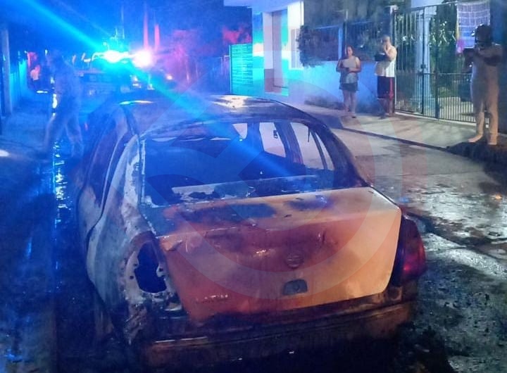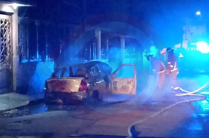 Huejutla, Hgo.- Por un posible corto circuito eléctrico, un auto compacto ardió en llamas la noche de este lunes, en la calle Azafrán de la colonia Valle del Encinal de esta ciudad.