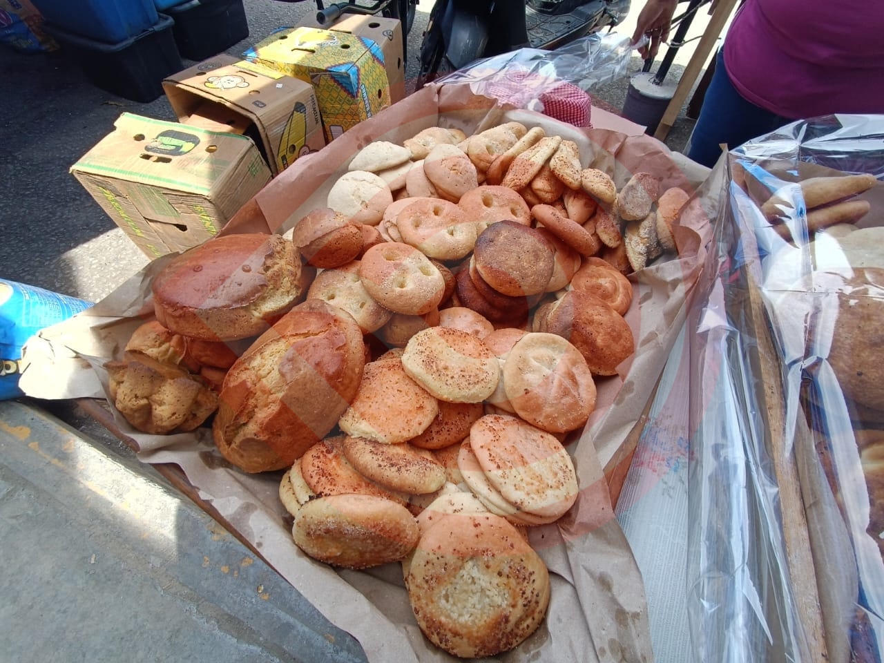 Las piezas que elabora son tortas y carteras de queso y mantequilla, pastelitos de piña, queso, leche y bolillitos; los precios que maneja en piezas pequeñas son de 5 x 20 pesos y piezas de tamaño más grandes de 6 y 12 pesos, señala que las que más solicitan son de pan de mantequilla y queso.