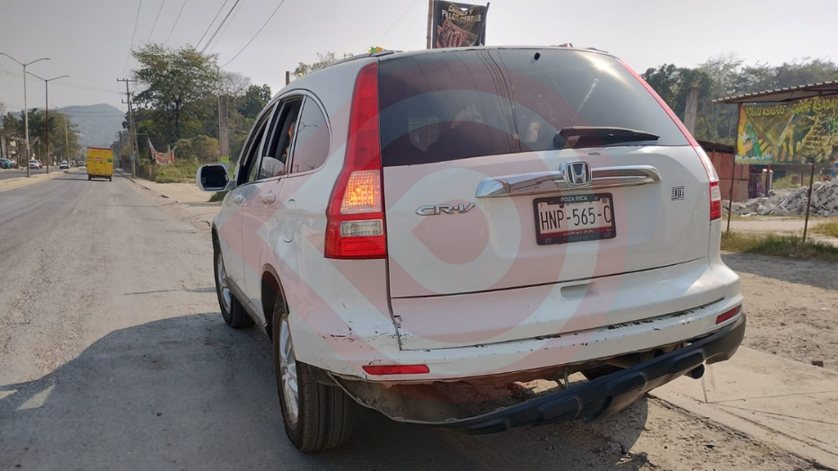 De acuerdo con los datos recabados en el lugar de los hechos, el percance ocurrió frente al centro de verificación, ubicado en la colonia Olímpica de esta ciudad y el incidente fue provocado por una unidad de alquiler con número económico 0106, la cual presuntamente se desplazaba a exceso de velocidad, misma que terminó estampada en la parte trasera de una camioneta Honda CRV, de color blanco, que era conducida por una dama.
