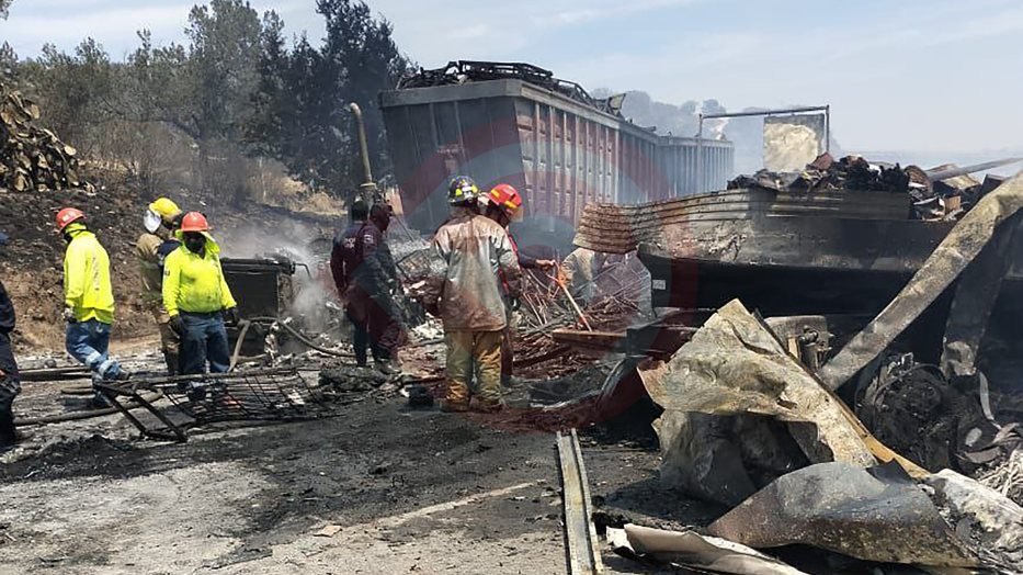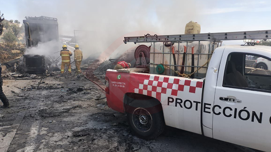 Pachuca de Soto, Hgo.- Alrededor de las 9 horas de este lunes, se reportó el choque entre dos tractocamiones sobre la autopista Arco Norte con dirección a Puebla, pasando la caseta Ciudad Sahagún, a la altura del kilómetro 173, situación que provocó un incendio y que la carretera permaneciera cerrada por varias horas en ambos sentidos.