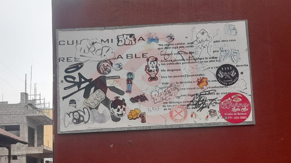 María García Larios, comentó que, una muestra de la falta de cultura vial y peatonal, así como el poco interés de sus habitantes, es que los pasos peatonales están despintados y los decálogos del peatón que se colocaron en el Centro Histórico, vandalizados.