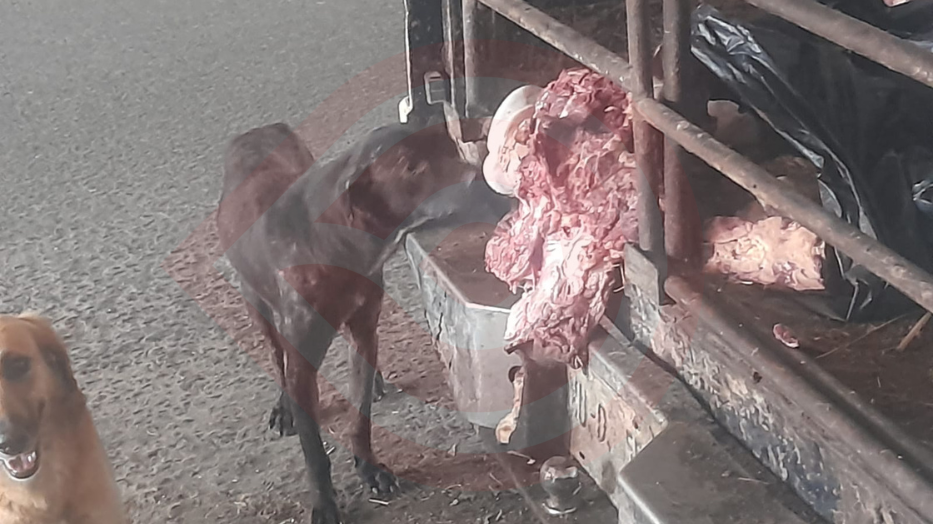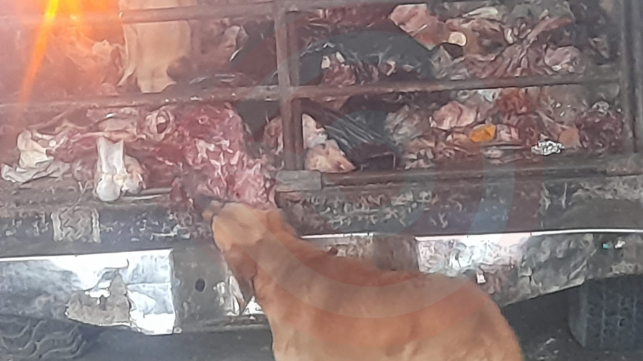Sin embargo, la mañana de este viernes, no había ninguna unidad recolectora en el sitio ni la camioneta estaba cubierta, la cual por estar repleta de huesos y retazos de carne, los perros pugnaban por jalarlos al piso e incluso uno estaba arriba de la unidad.