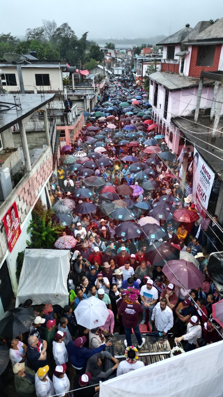 San Felipe Orizatlán, Hgo.- A pesar de la lluvia cientos de personas de las 118 comunidades que conforman el municipio de San Felipe Orizatlán acompañaron al candidato del Partido de Regeneración Nacional, Marco Andrade, “el mero Cualli” en su arranque de campaña.