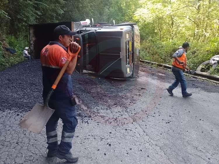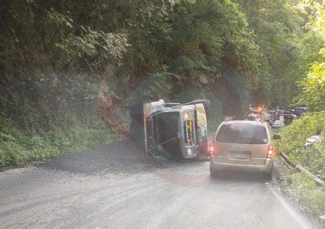 La pesada unidad quedó atravesada sobre la carpeta asfáltica y bloqueó el paso en ambos carriles, sin embargo, tras la llegada del personal de Protección Civil lograron mover el camión y se liberó el paso en un carril.