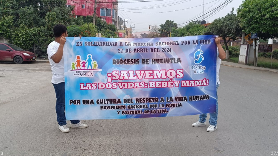 Huejutla, Hgo.- Cientos de huejutlenses de las diversas parroquias de la Diócesis de Huejutla, marcharon “Por la Vida Humana” en un recorrido realizado la mañana del sábado 27 de abril, iniciando desde la colonia Paraíso de las Huastecas hasta llegar al Santuario de la Virgen de Guadalupe.