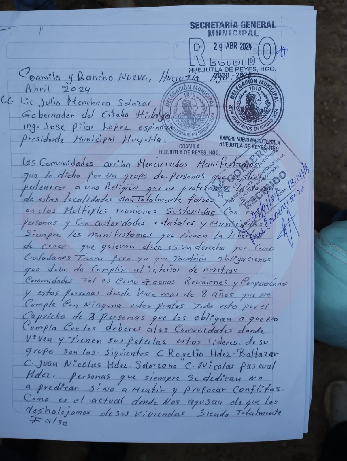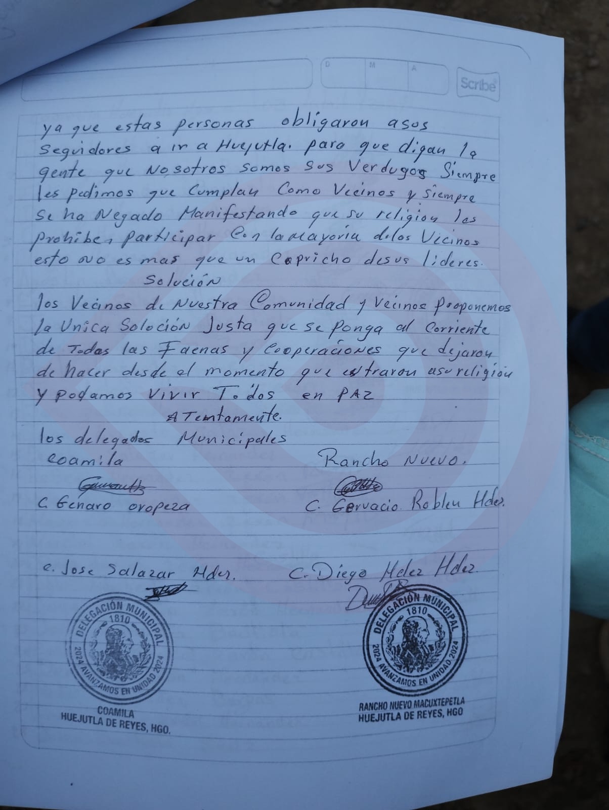 En entrevista con Zunoticia, Genaro Oropeza y Gervacio Robles Hernández, delegados de los poblados en mención, acompañados de sus comitivas y vecinos, manifestaron que las personas tienen la libertad de profesar la religión que quieran, ya que es un derecho que tienen como ciudadanos, pero también tienen obligaciones que deben de cumplir en el interior de las comunidades, como faenas, reuniones y cooperaciones y estas personas desde hace más de 8 años que no cumplen con ninguno de estos puntos.