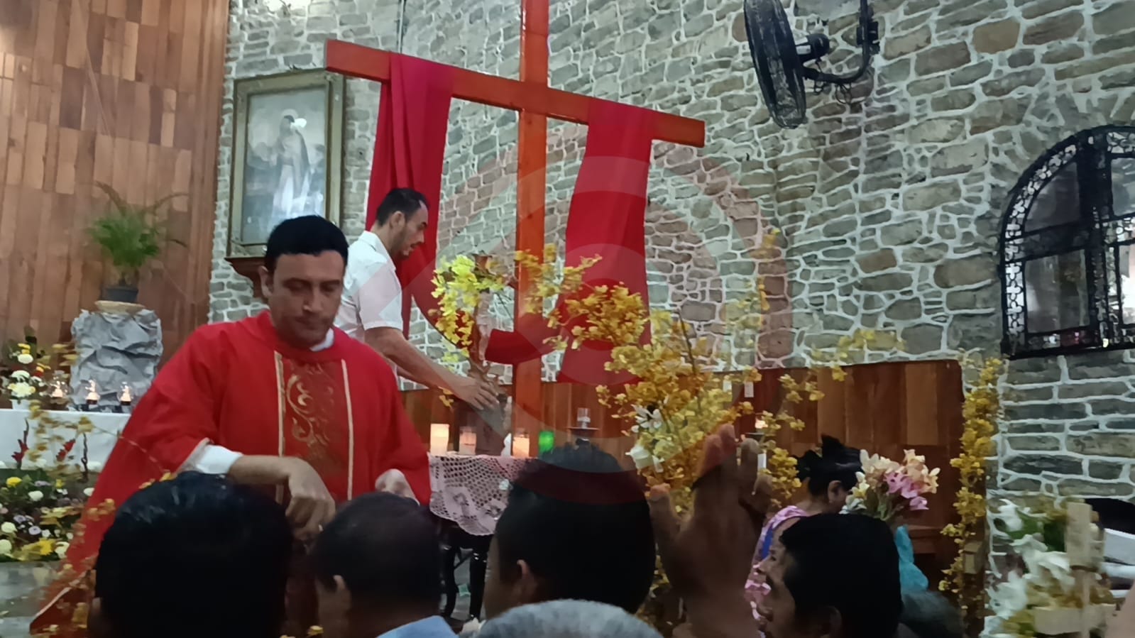 Con cruces de madera debidamente adornadas con flores naturales y artificiales los fieles católicos escucharon con atención las misas y procedieron a bendecir la Cruz.
