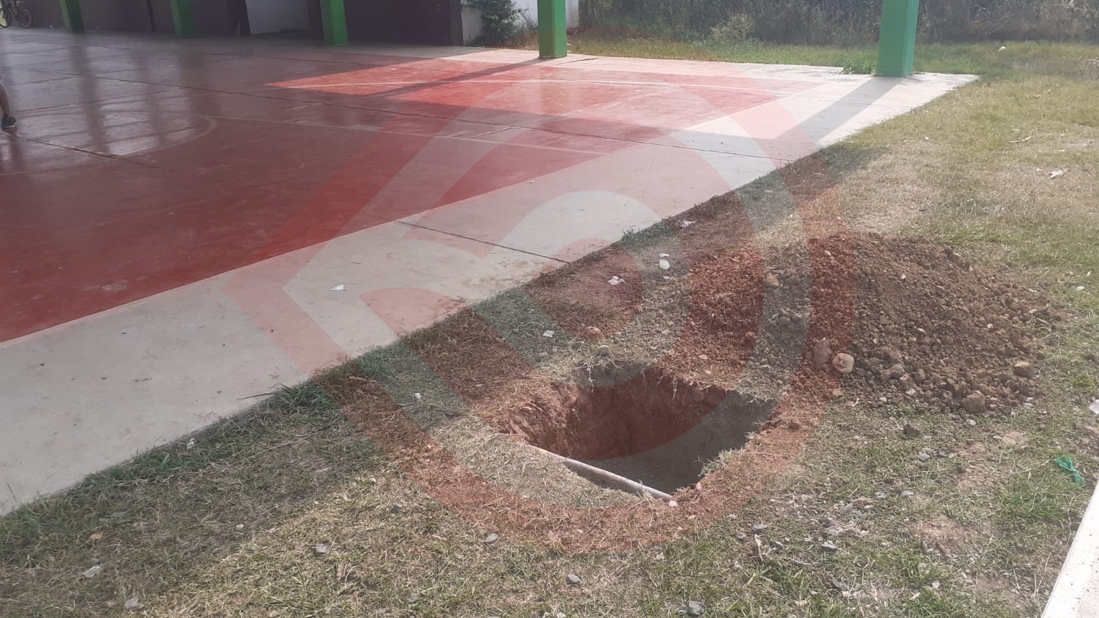 Por José Luis Romero Ruiz/Zunoticia Huejutla, Hgo.- Realizaron excavaciones entre la cancha de Básquetbol de la galera y la cancha de fútbol 5 de pasto sintético, y dicho orificios representan un peligro para los jugadores de la Liga de Básquetbol de Veteranos de Colalambre de Huejutla, Hidalgo (LBVCHH).