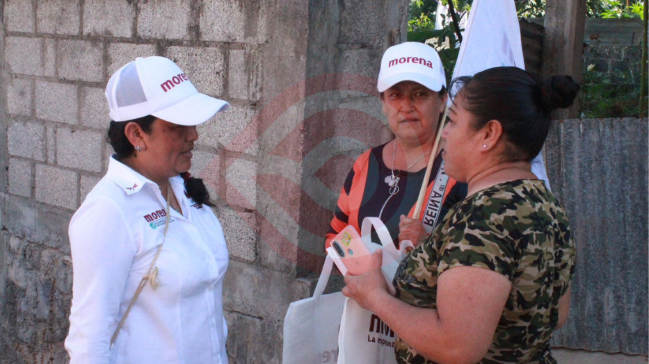 Nora Aidhé Luciano aprovechó la jornada de este día para acercarse a la gente trabajadora, madres de familia y los dueños de negocios a quienes les habló del proyecto de crédito para comerciantes, una de las propuestas para impulsar el desarrollo económico de las familias tlanchinolenses.