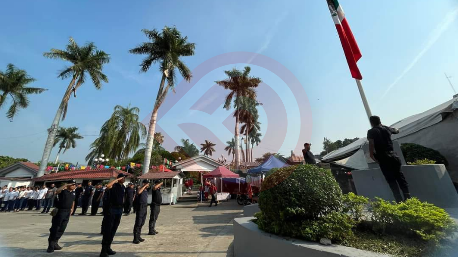 En la plaza cívica del palacio municipal, autoridades municipales realizaron honores a la bandera, entonación del himno nacional mexicano y guardia de honor.