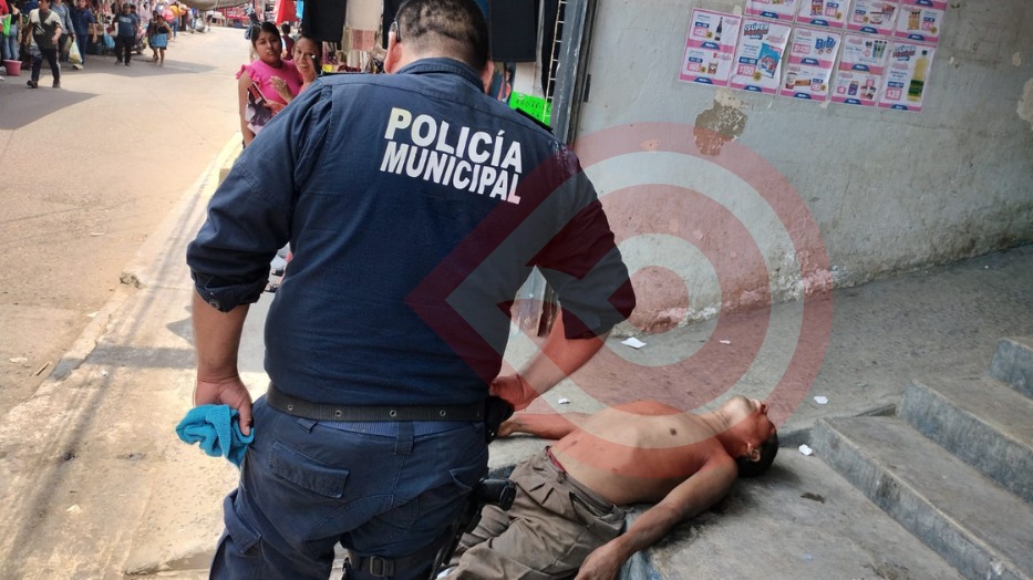 Huejutla, Hgo.- Un hombre que se encontraba en aparente estado de ebriedad estuvo a punto de morir por un golpe de calor, al quedarse dormido en la vía pública la tarde de este viernes 10 de mayo.