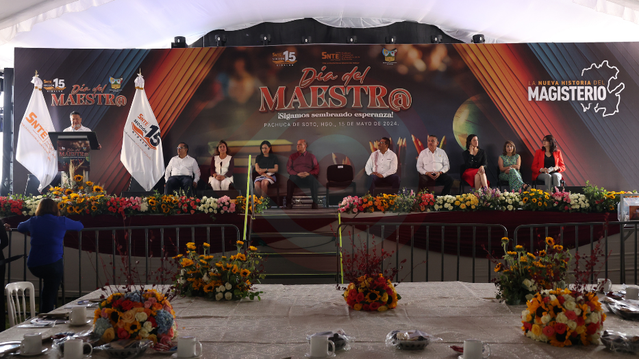 Pachuca de Soto, Hgo.- En el marco de las celebraciones de las y los maestros, el titular del Poder Ejecutivo en Hidalgo acompañó en su día, a quienes integran la sección XV del Sindicato Nacional de Trabajadores de la Educación (SNTE); oportunidad en la que reconoció la vocación y espíritu de servicio de quienes deciden dedicar su vida a la atención y formación académica de miles de niñas, niños y adolescentes.