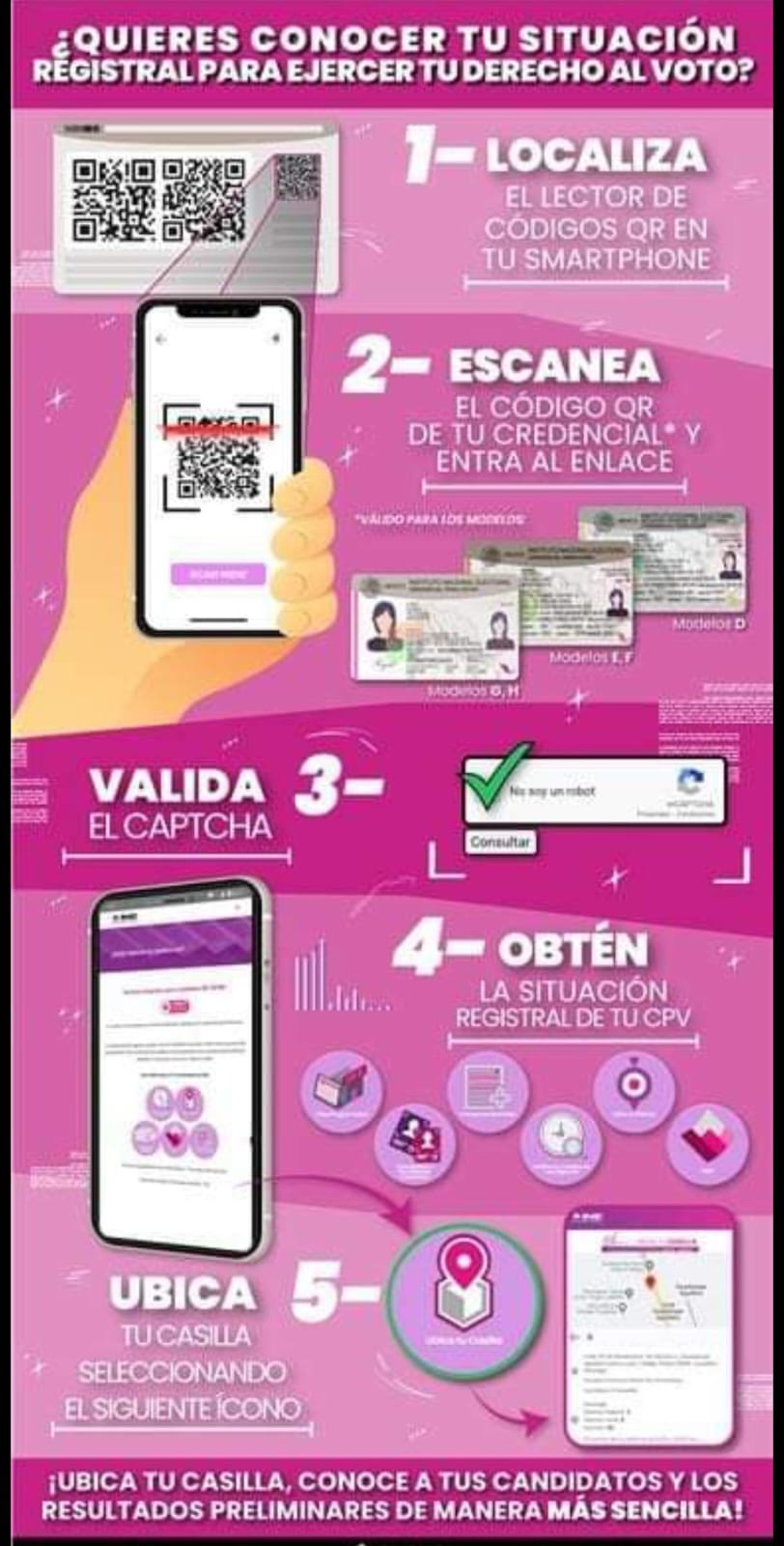 Dijo que, la Infografía indica en el Paso 1 que deben utilizar un teléfono con cámara para que puedan leer el Código QR, que se encuentra en la parte de atrás de la credencial de elector.