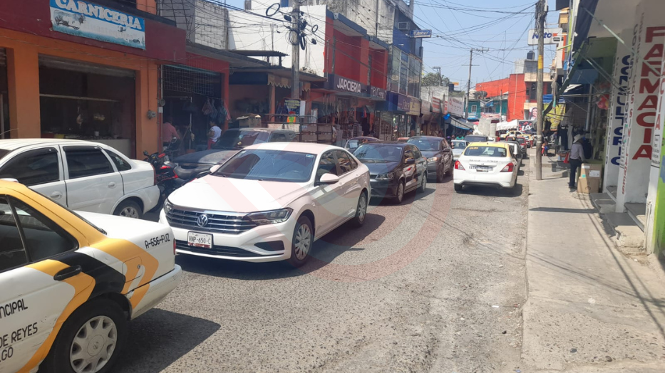 Explicaron que, la anarquía la generan comerciantes propietarios de negocios establecidos en la parte frontal del mercado municipal, ya que estacionan vehículos en doble fila para cargar y descargar mercancía, obstruyendo la circulación vial.