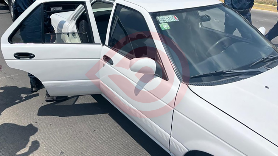 Con apoyo del C5i, se visualizó el automóvil marca Nissan, color blanco, en el cual habían huido los sospechosos, trazando la ruta de trayecto hasta su intervención en el bulevar Colosio, a la altura de una tienda de autoservicio.
