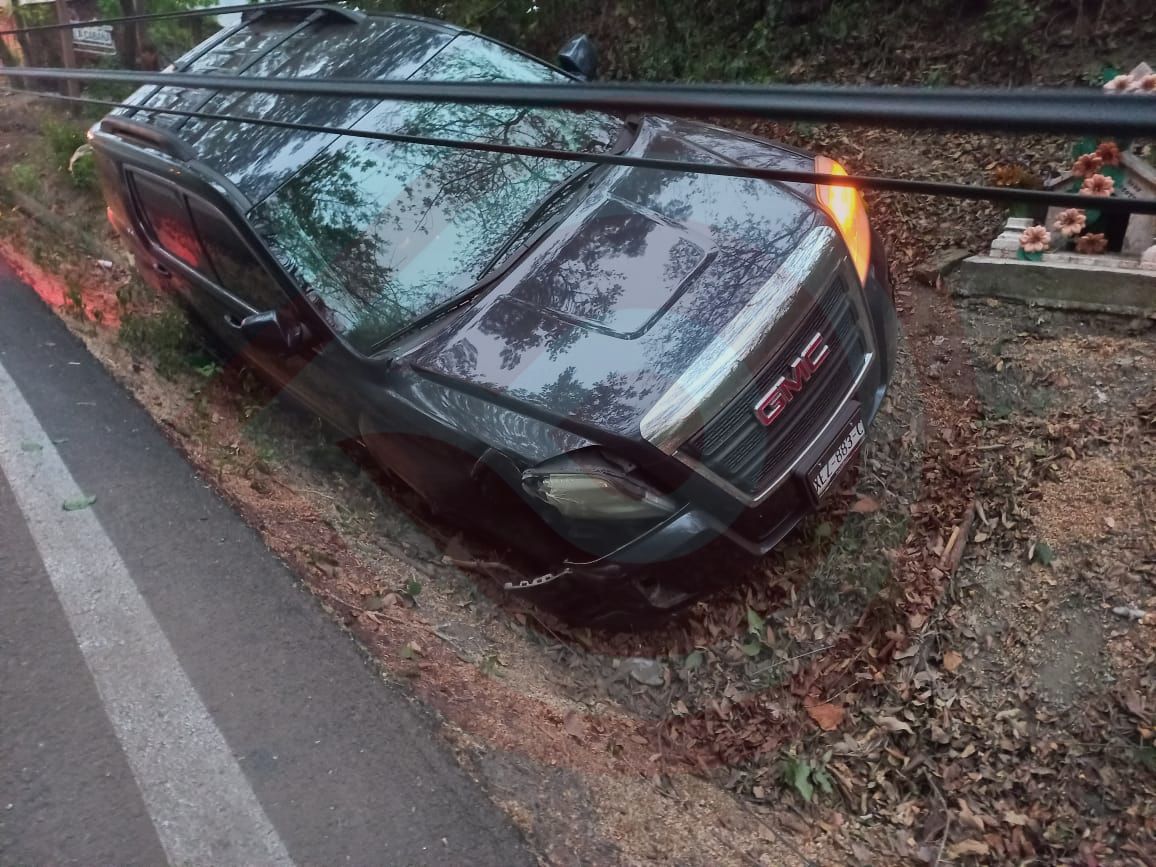 La unidad motora al parecer era guiada a exceso de velocidad, motivo por el cual el conductor perdió el control del volante en la curva y terminó afuera de carpeta asfáltica e impactó un poste de madera de Telmex el cual derribó.