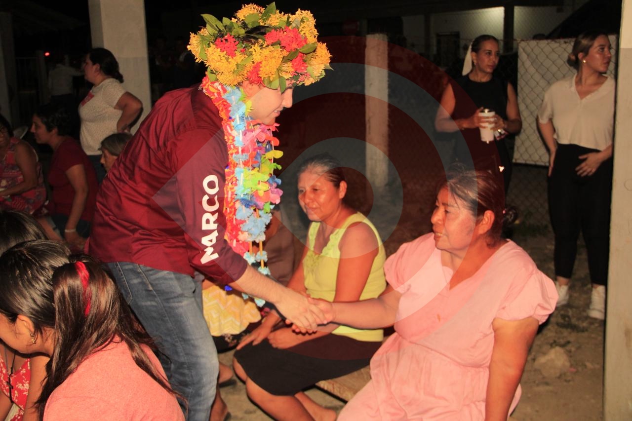 Una vez concluida la reunión vecinal en El Manantial, Marco Andrade acudió a la localidad de Valle Verde, donde decenas de personas lo recibieron con música de viento, coronas de flores y con mucha esperanza de que llegue la transformación a San Felipe Orizatlán.