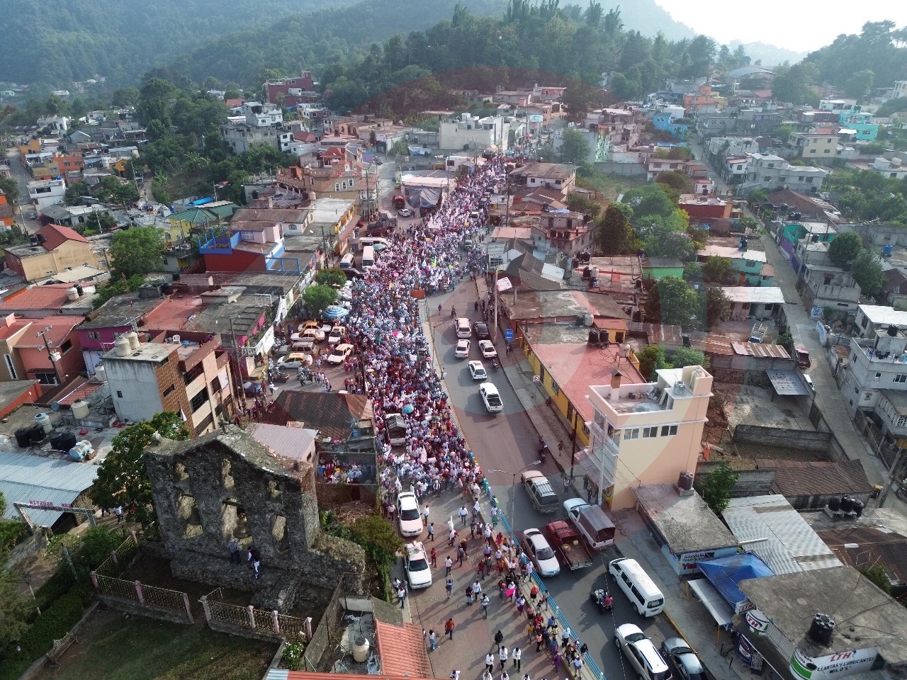 Tlanchinol, Hgo.- Nora Aidhé Luciano Martínez, encabezó con liderazgo la demanda social de la marginación y atraso de los miles de habitantes de las comunidades de esta cabecera municipal, quienes acompañaron a la candidata desde “La Pista” hasta la plaza Bicentenario.