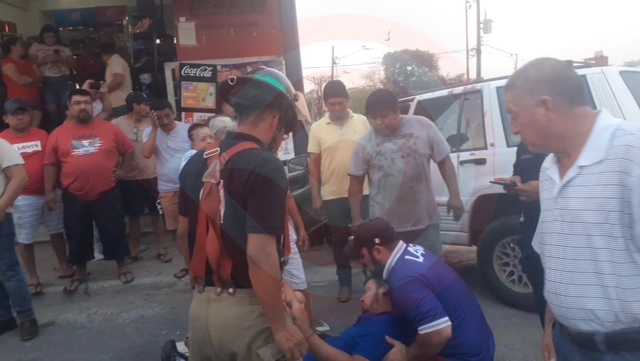 Elementos del heroico cuerpo de Bomberos llegó al lugar a apagar la motocicleta; mientras eso sucedía la misma camioneta (Grand Cherokee), se impactó frente a una tienda de abarrotes, donde detuvo su loca carrera.