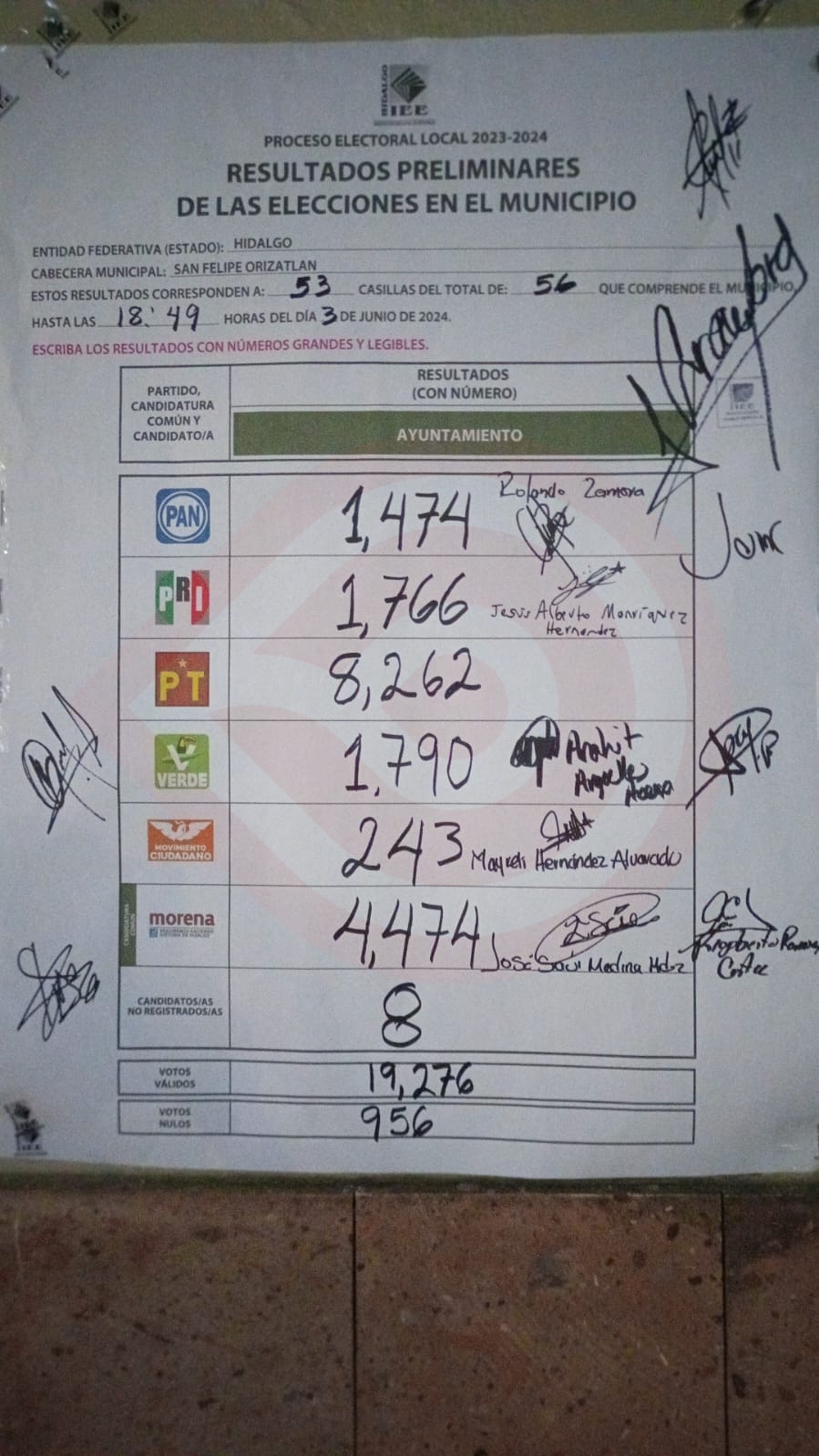 Huejutla, Hgo.- La tarde noche de este lunes 3 de junio, en el 04 Consejo Distrital Local del IEEH en Huejutla de Reyes, se llevó a cabo la publicación de los Resultados Preliminares de la Jornada Electoral Local del domingo 2 de junio, en donde se eligieron  Diputados Locales y Presidentes Municipales.