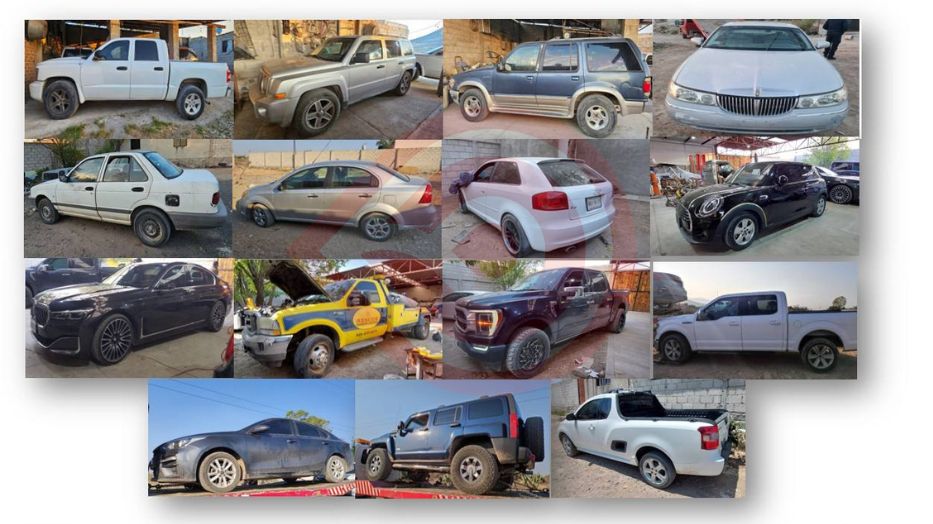 Las autoridades decomisaron también tres camionetas Ford Lobo, un vehículo Audi, un automóvil BMW, una camioneta Hummer, un vehículo Lincoln, tres autos de diferentes marcas, una grúa y otras cuatro camionetas de diferentes modelos.