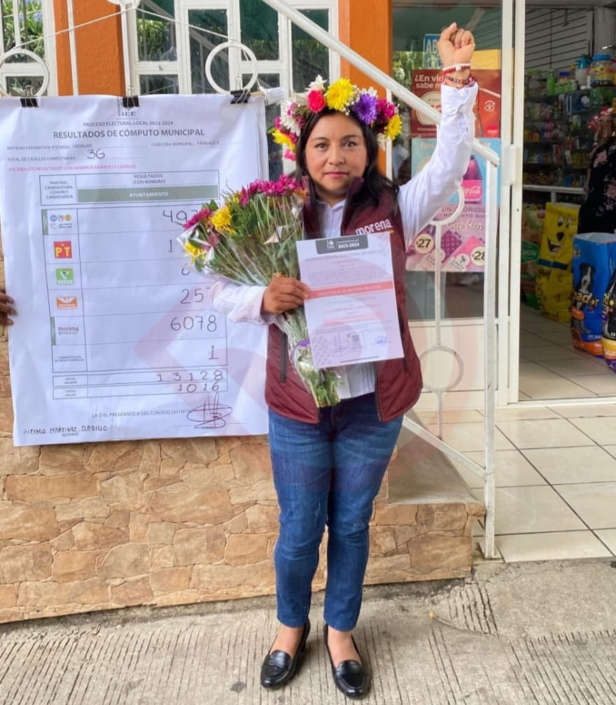 Yahualica, Hidalgo.- Francisca Lara Velázquez recibió este día su constancia que la acredita como Presidenta Electa del Municipio de Yahualica de manos de Consejeros del Distrito 03 del Instituto Estatal Electoral de Hidalgo.
