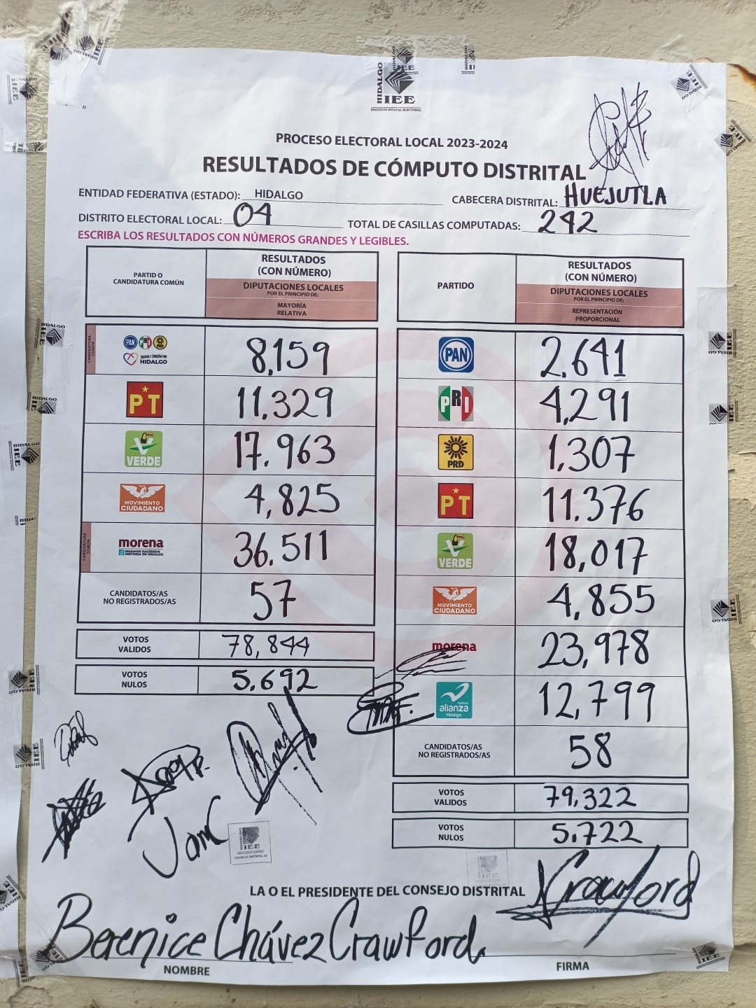 Morena Nueva Alianza: 36,511 votos, Candidatos no registrados: 57, Votos Nulos: 5,692 y Votos Válidos: 78, 844.