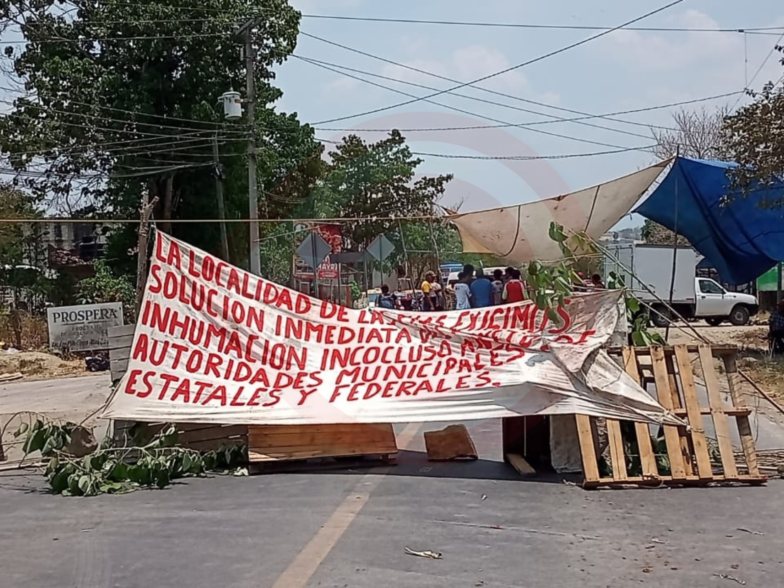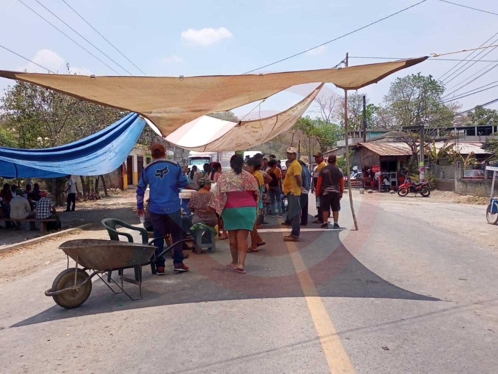Los manifestantes colocaron piedras y troncos sobre la cinta asfáltica, además instalaron una carpa para protegerse de los candentes rayos del sol y de acuerdo con lo dicho por los protestantes, no van a quitar el bloqueo, hasta que les resuelvan el problema.