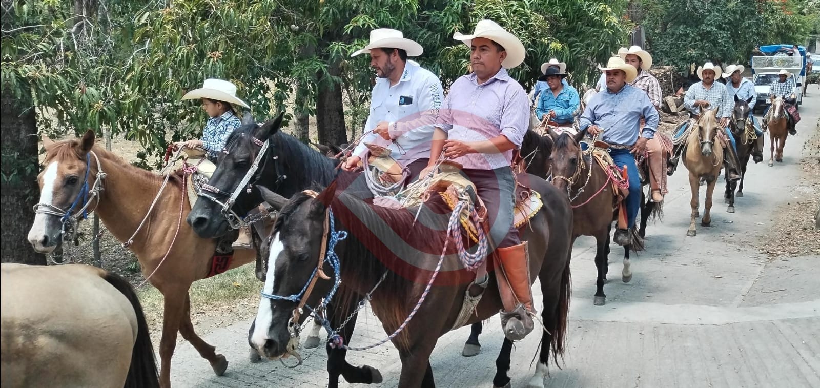 de 100 cabalgantes se dieron cita al lugar y partieron con rumbo a la localidad de Tlatzonco; en este acto se sumaron autoridades municipales encabezados por el presidente municipal, Julio César González García y la presidenta electa, Vanessa Mejía Hernández.
