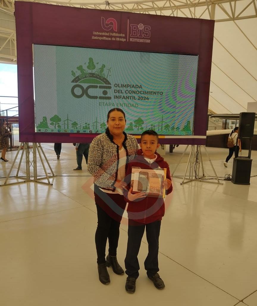 Es el alumno Blas David Ramírez González, acompañado de su maestra Maribel Naranjo Hernández, de la Escuela Primaria Indígena Nezahualcóyotl de Santa Teresa, Yahualica, Hgo.; perteneciente a la Zona Escolar 033, Huitznopala, Yahualica, Hidalgo; quien este viernes hizo su participación en la Olimpiada del Conocimiento Infantil en su etapa Estatal, que se llevó a cabo en la Pachuca, Hgo.