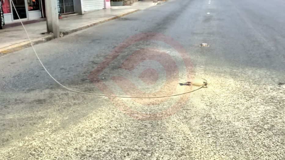 Huejutla de Reyes, Hgo.- Por el riesgo que implicaba un cable de alta tensión sobre la cinta asfáltica en la calle Morelos, elementos de la Dirección de Seguridad Pública y Tránsito Municipal, desviaron la circulación vehicular.