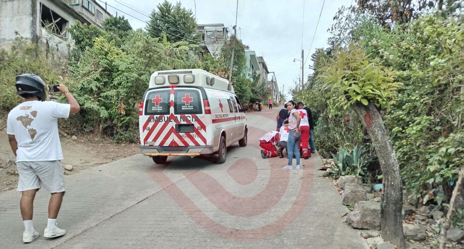 Paramédicos de la Cruz Roja acudieron a ese lugar para atender a una mujer, una niña y un hombre, quienes circulaban en una motocicleta, pero después de derrapar, el conductor perdió el control y terminaron cayendo.