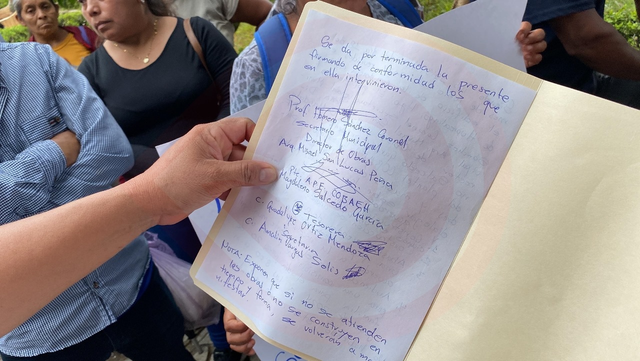 El día martes el Secretario municipal nos firmó una minuta junto con el director de Obras Públicas y no la están cumpliendo, agregó un padre de familia. A mediodía la comitiva que había asistido se retiró del punto de encuentro, para dirigirse al plantel COBAEH Huazalingo, lugar en el que tomaron la decisión de convocar a una reunión a los padres de familia el lunes, para darle continuidad al asunto.