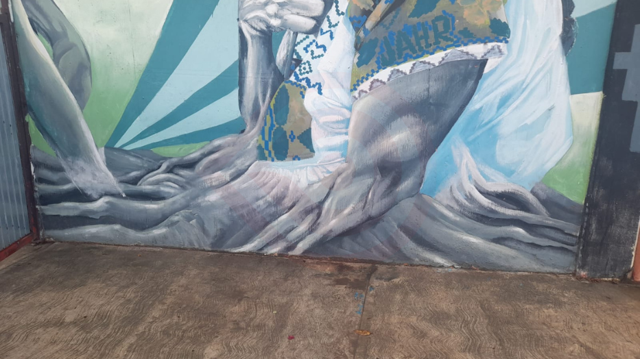 Explicaron que, distingue e identifica al mural, que desconocen quién y/o quiénes lo plasmaron, ya que solo se ve en uno de los extremos la firma de F. Jha Art. -19-, es que las extremidades inferiores de las mujeres son gruesas raíces de árbol, por lo que consideraron que, sin duda es alusiva a la floresta.