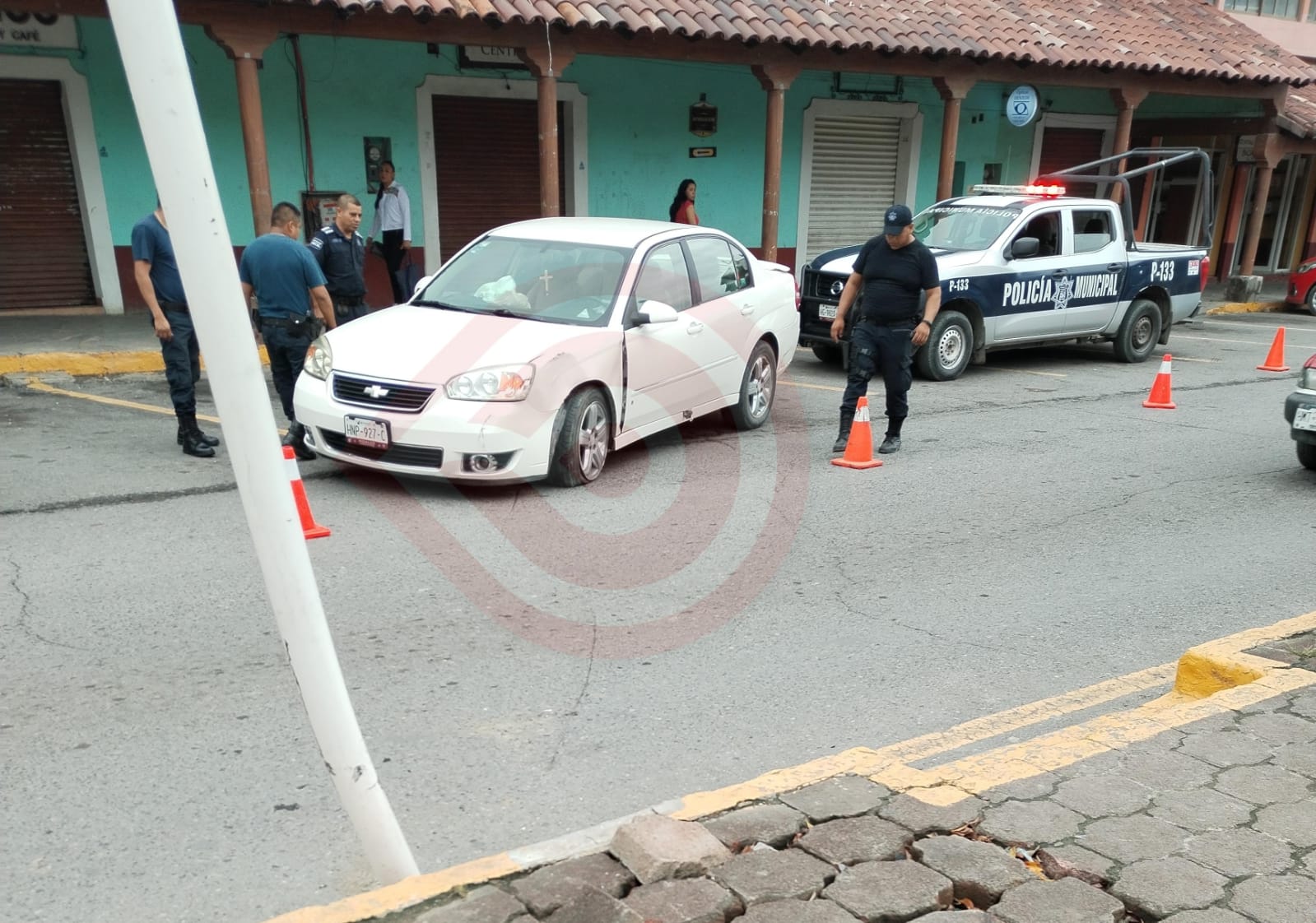 Lo anterior, ocurrió la mañana de este lunes sobre la Avenida Revolución Mexicana, en frente del kiosco cuando la mujer, de nombre Lilia del Carmen V. B. de 65 años, del Llano, Platón Sánchez, al circular en ese lugar y al sufrir la ponchadura de la llanta delantera de su vehículo, Chevrolet Malibu, color blanco, perdió el control y se impactó contra un poste metálico.