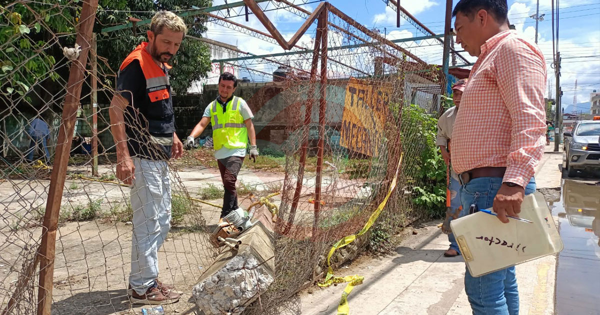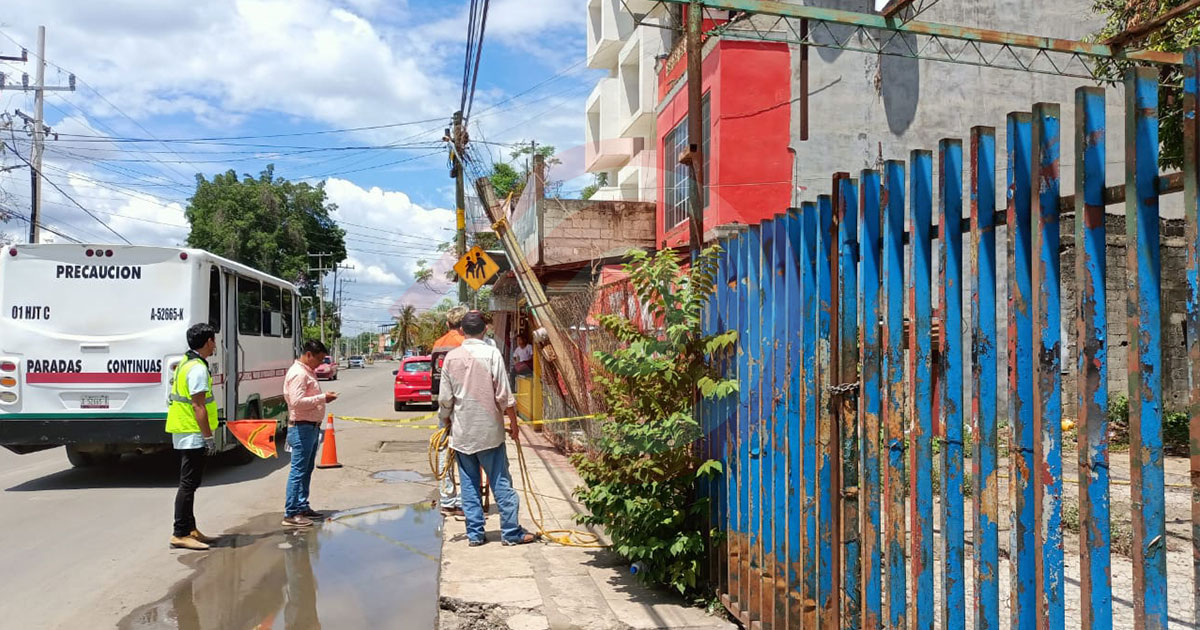 Los hechos se registraron en días pasados cuando vecinos de la colonia Aviación Civil se percataron que en un predio particular se encontraba un poste de luz de concreto a punto de caerse, mismo que ponía en peligro la vida de quienes circulaban por la acera y la cinta asfáltica de la Avenida Adolfo López Mateos.